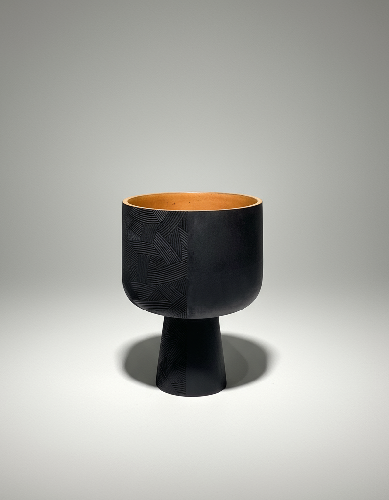 Frutero elaborado en madera torneada y tallada a mano.
