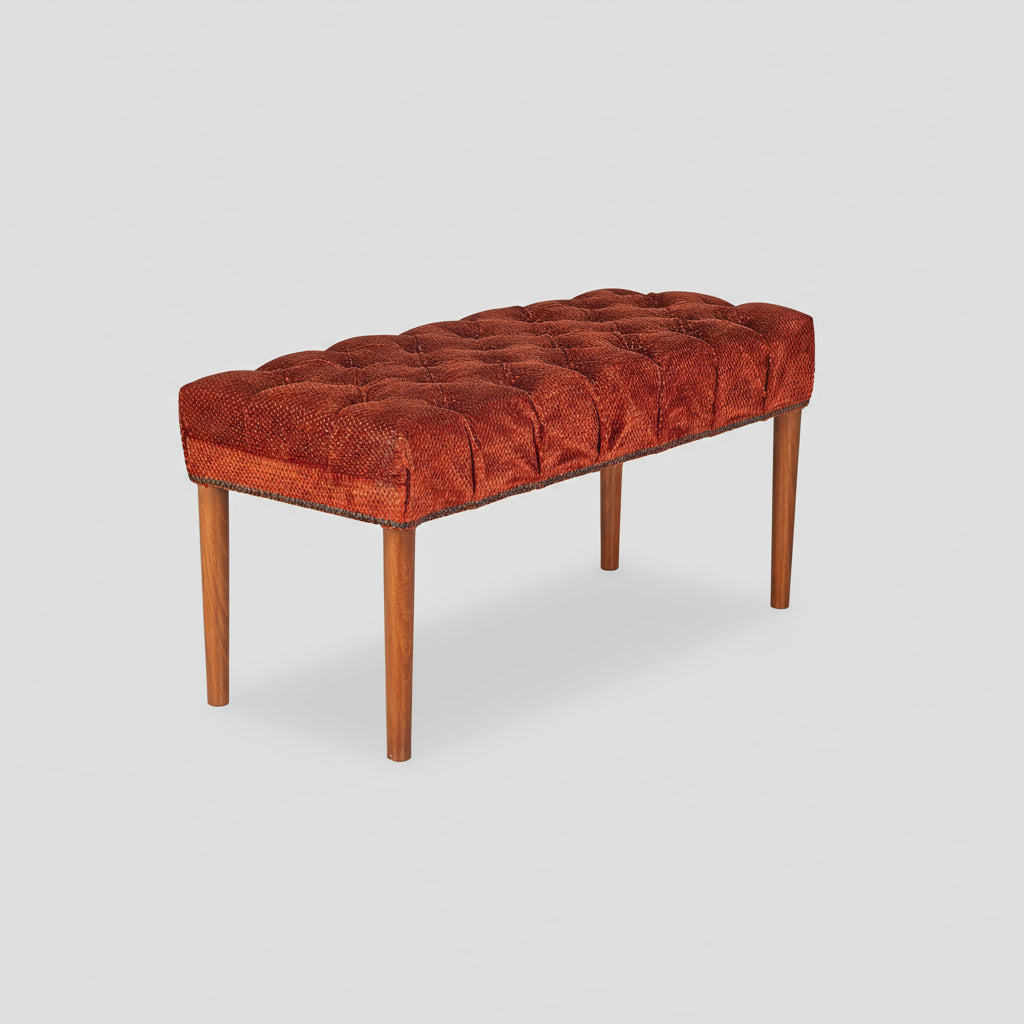 La banca, asiento útil, versátil y cómodo para las zonas pequeñas de estar y corredores de acceso o para el pie de la cama en el dormitorio; en este caso un diseño con asiento donde el tapizado capitoneado proporciona la atmósfera de un espacio confortable e intimo. Elaborada en madera y tapizado en finas telas europeas dan un elemento lleno de versatilidad, funcionalidad y elegancia. Tapizado a elección. Tiempo de entrega máximo: 30 días