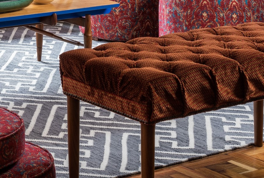 La banca, asiento útil, versátil y cómodo para las zonas pequeñas de estar y corredores de acceso o para el pie de la cama en el dormitorio; en este caso un diseño con asiento donde el tapizado capitoneado proporciona la atmósfera de un espacio confortable e intimo. Elaborada en madera y tapizado en finas telas europeas dan un elemento lleno de versatilidad, funcionalidad y elegancia.