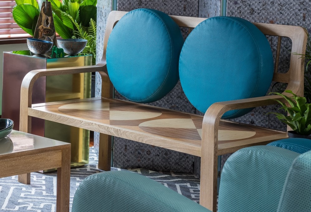 Los asientos más útiles, versátiles y cómodos para las zonas pequeñas de estar y corredores de acceso son las bancas, en este caso una banca en madera con finas líneas de diseño orgánico, magistral ejecución en el manejo de la madera y elegancia en su forma, convierte un espacio en sinónimo de elegancia y funcionalidad.