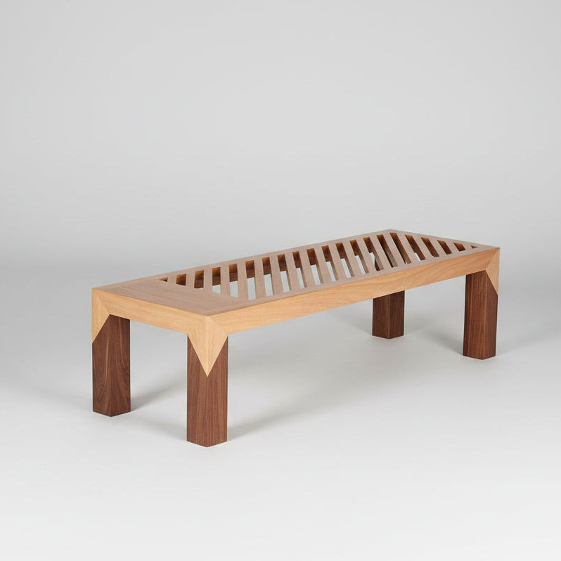Los asientos mas útiles, versátiles y cómodos para las zonas pequeñas de estar, corredores de acceso y salones alternos a los espacios principales son las bancas, en este caso una banca en madera con finas líneas de diseño geométrico, magistral ejecución en el manejo de la madera y elegancia en su mezcla de dos tipos de madera, convierten a esta banca en uno de los iconos del mobiliario propuesto por OCHOINFINITO. Estructura en madera Flor Morado y Nogal. Disponible para entrega inmediata. Precio especial por ser una pieza de exhibición.