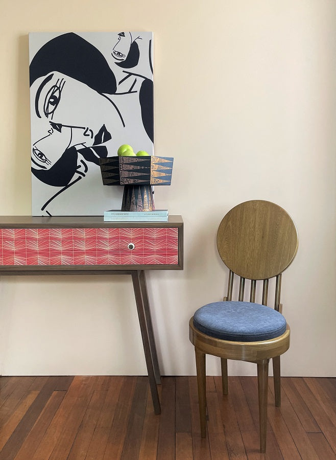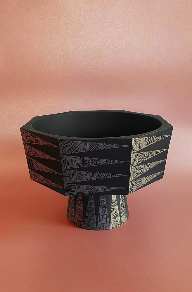 Frutero elaborado en madera torneada y decorado con la técnica artesanal del Barniz de Pasto - Mopa/Mopa.