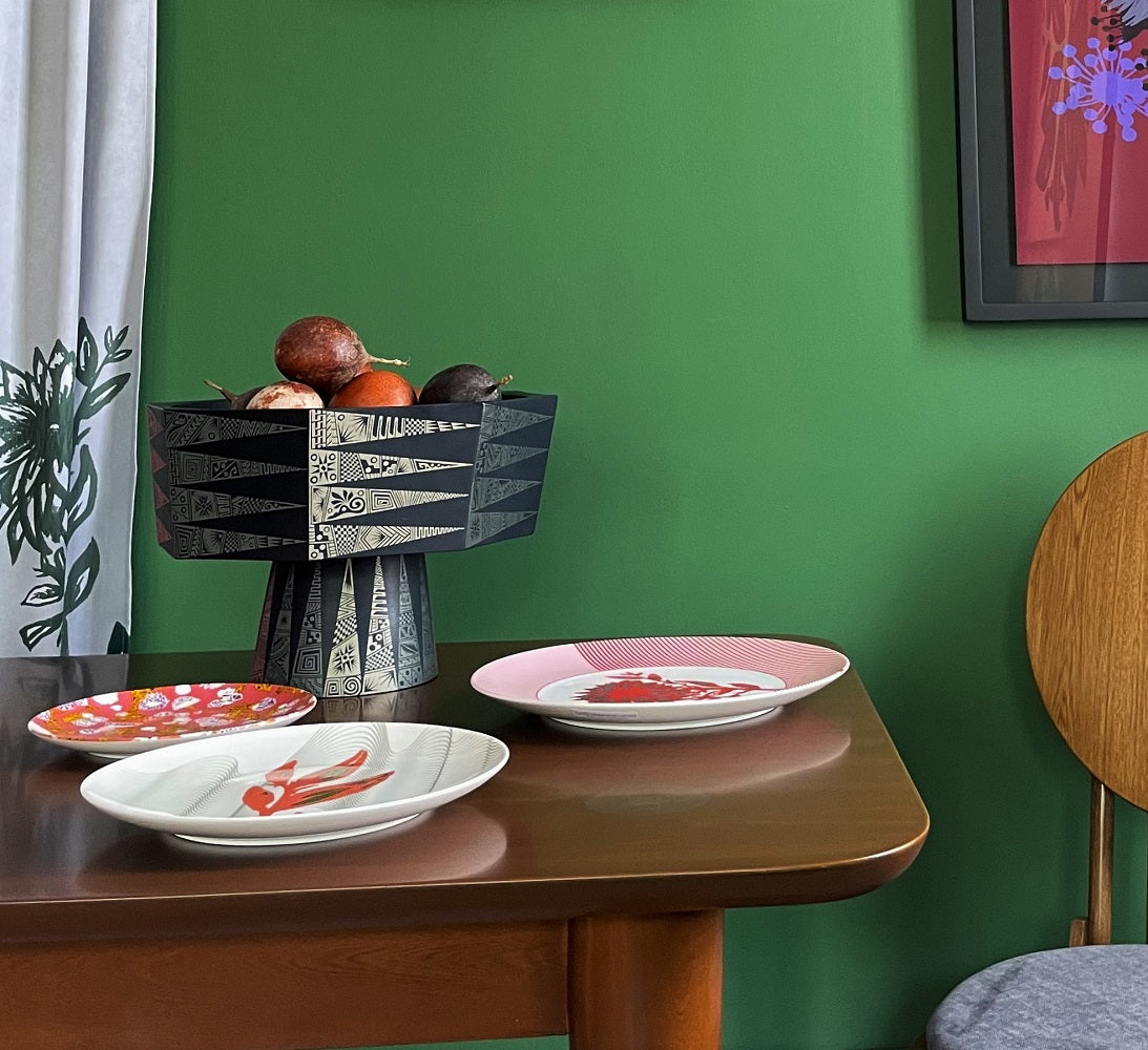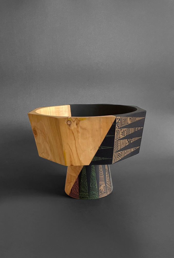 Frutero elaborado en madera torneada y decorado con la técnica artesanal del Barniz de Pasto - Mopa/Mopa.