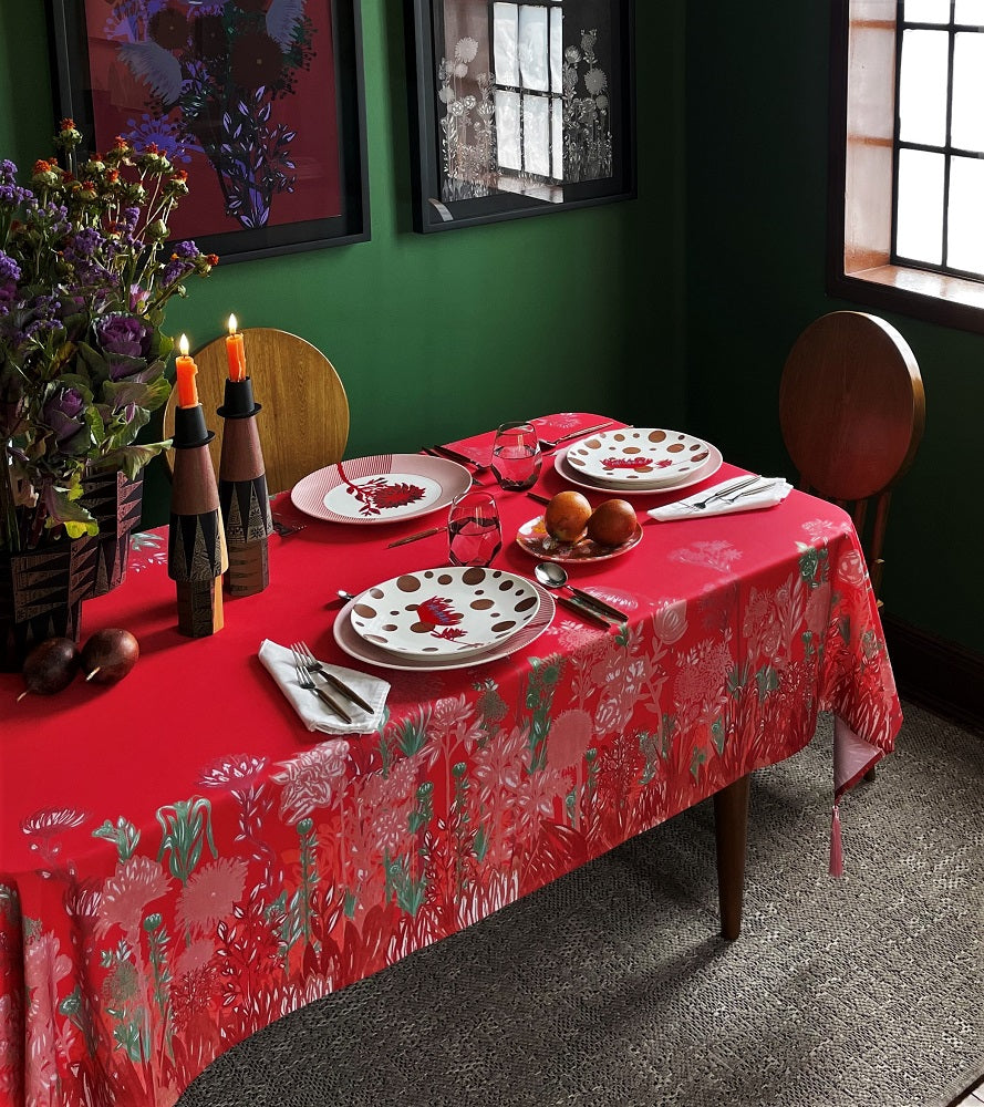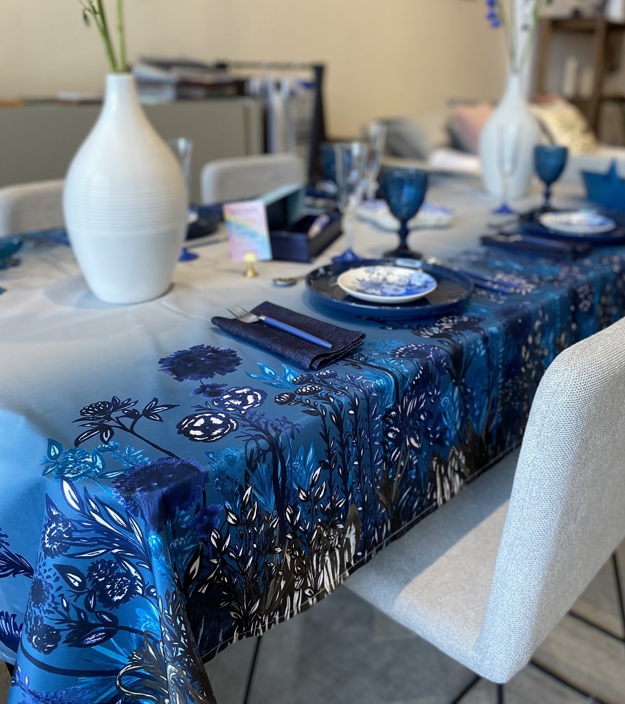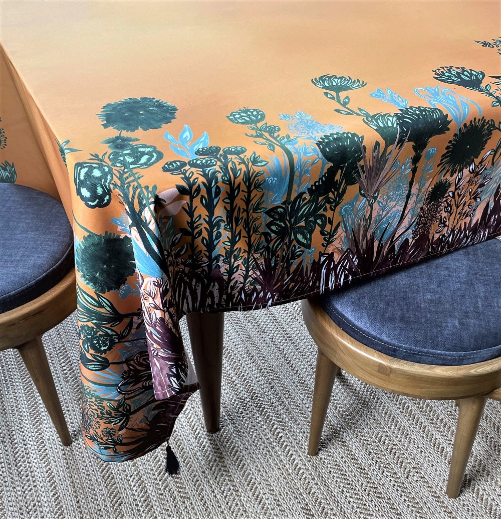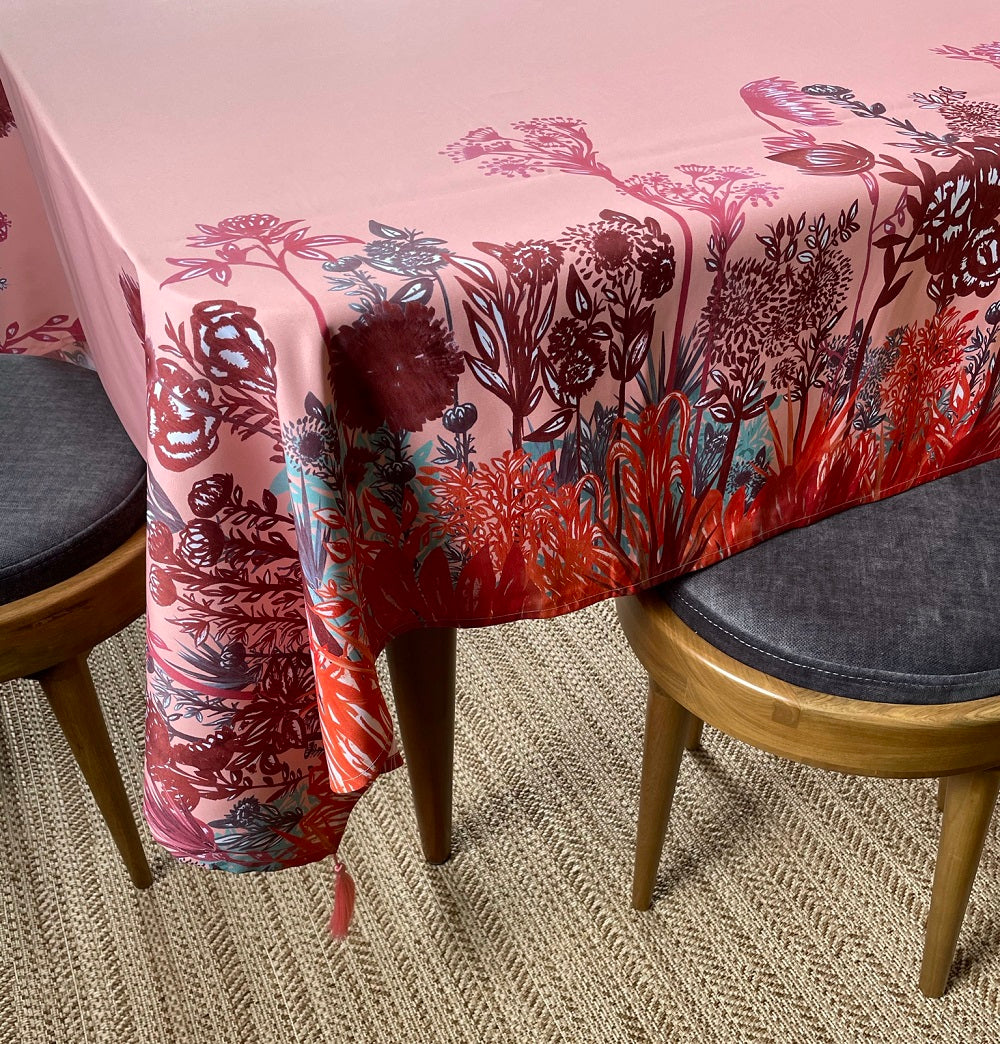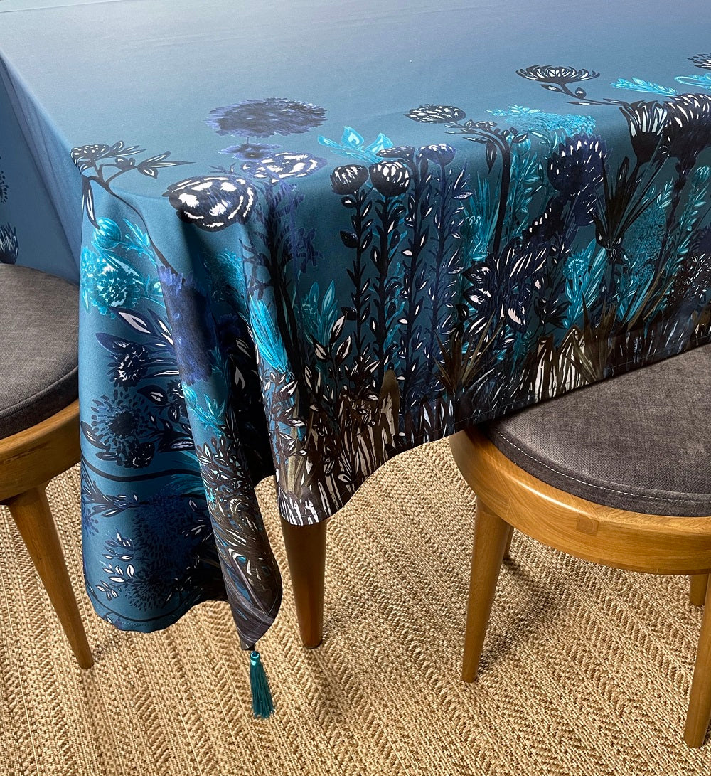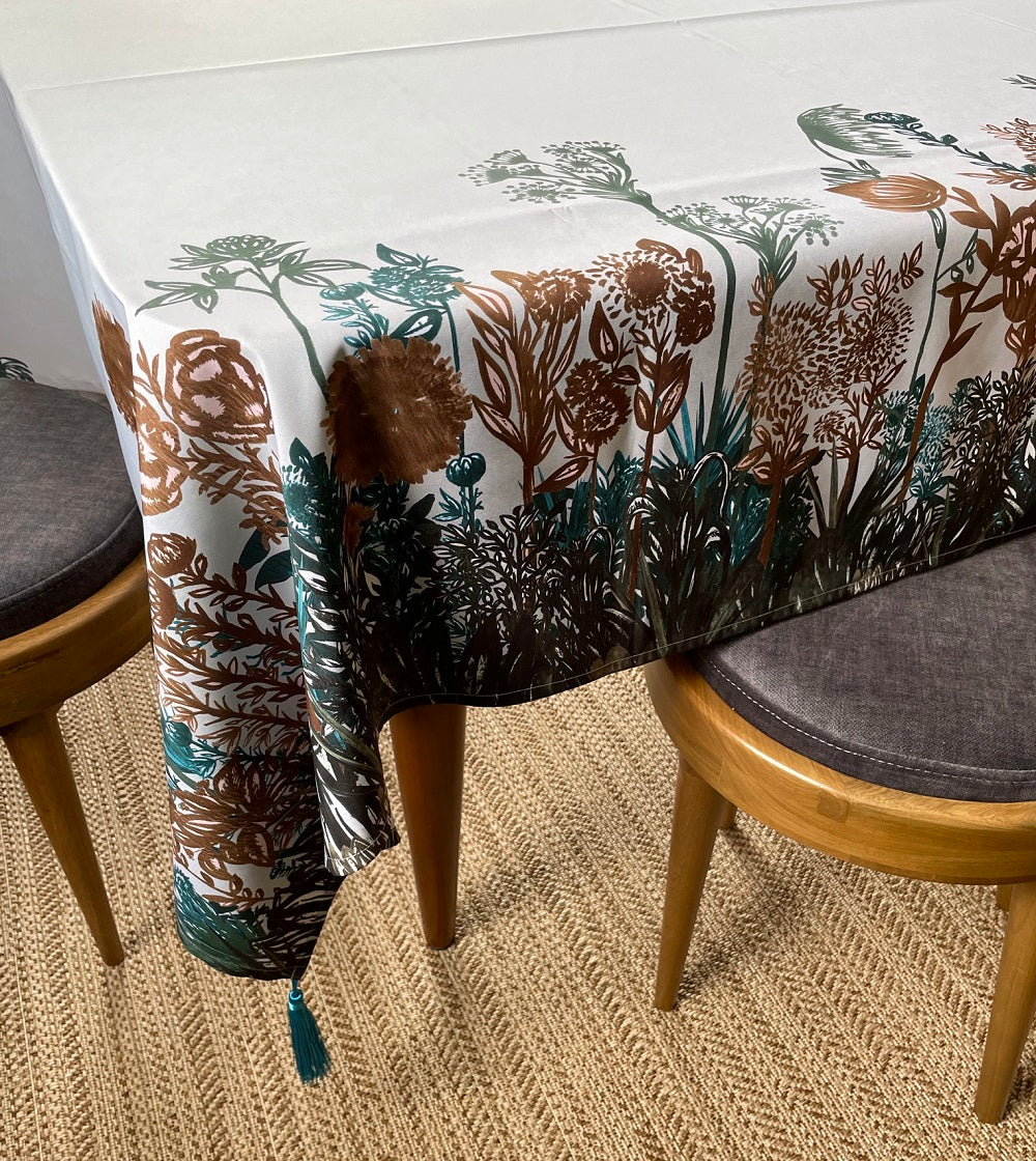 Mantel en lona tipo algodón, repele líquidos.