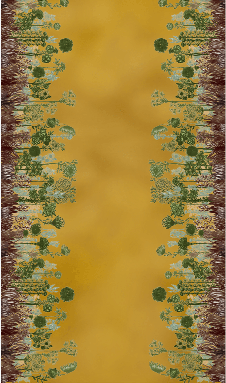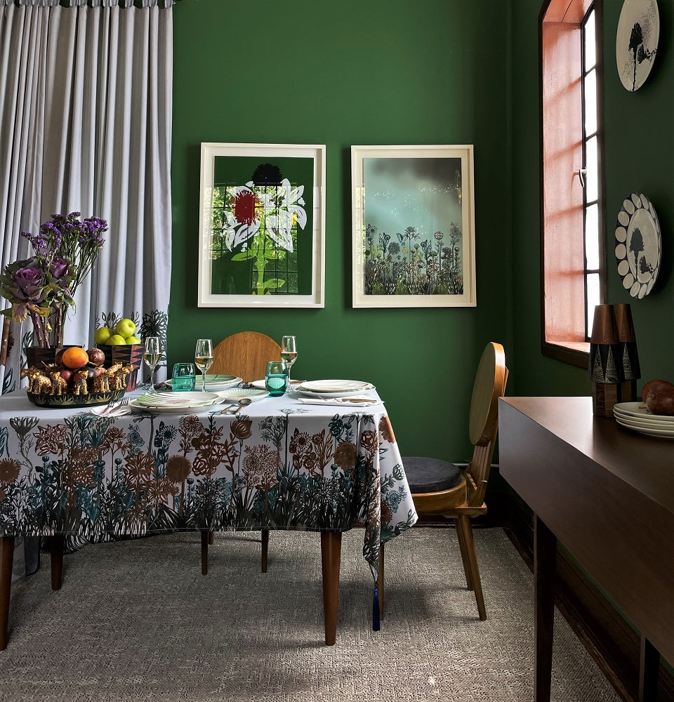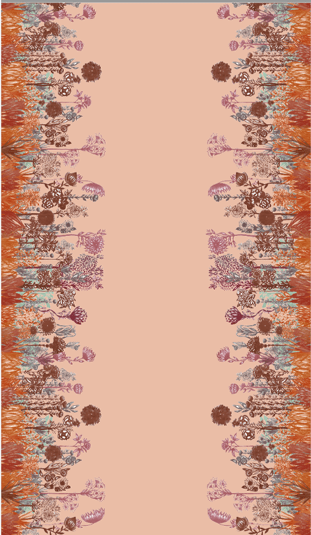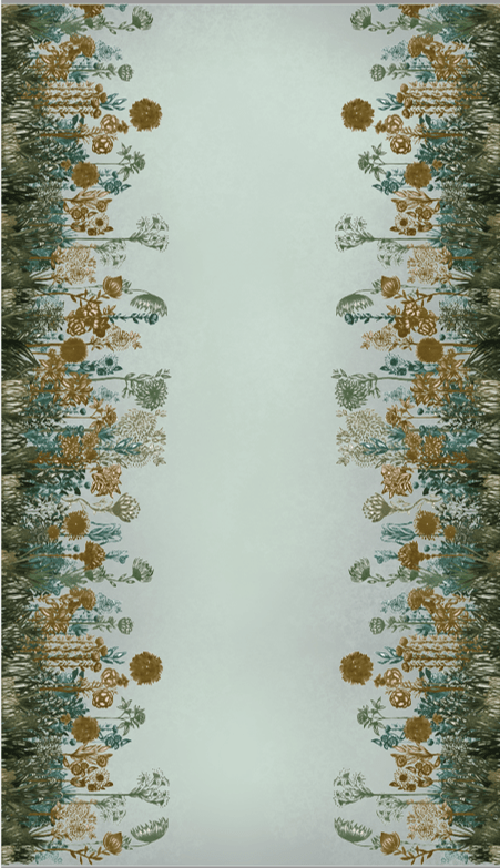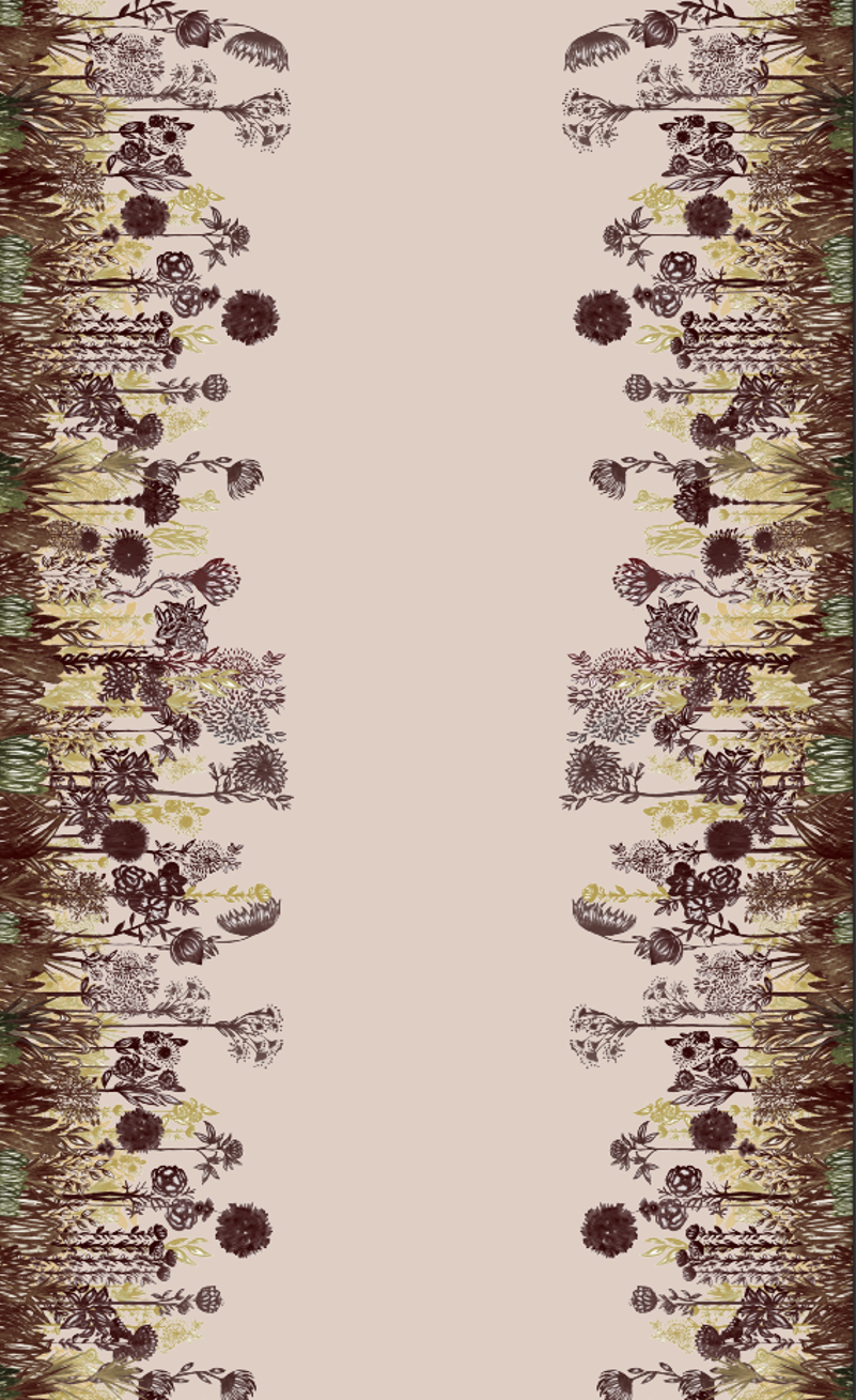 La creación de los patrones gráficos e ilustraciones de esta colección, parte de un dibujo a mano con tinta, trazo detallado de lo que queda en la memoria sobre la imagen de flores, ramas y arbustos presentes en ese Bosque Andino ubicado en 2.800 y 3.200 metros de altitud característico de los Cerros Orientales de Bogotá. El Bosque de Niebla se presenta como un ambiente húmedo, que se aprecia a la distancia como el característico manto de nubes que cubre la cumbre de las montañas andinas.
