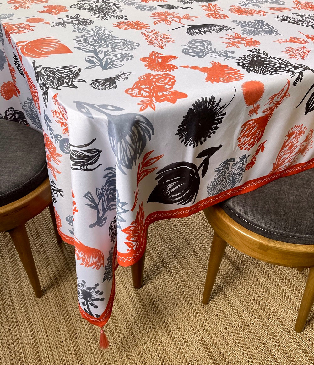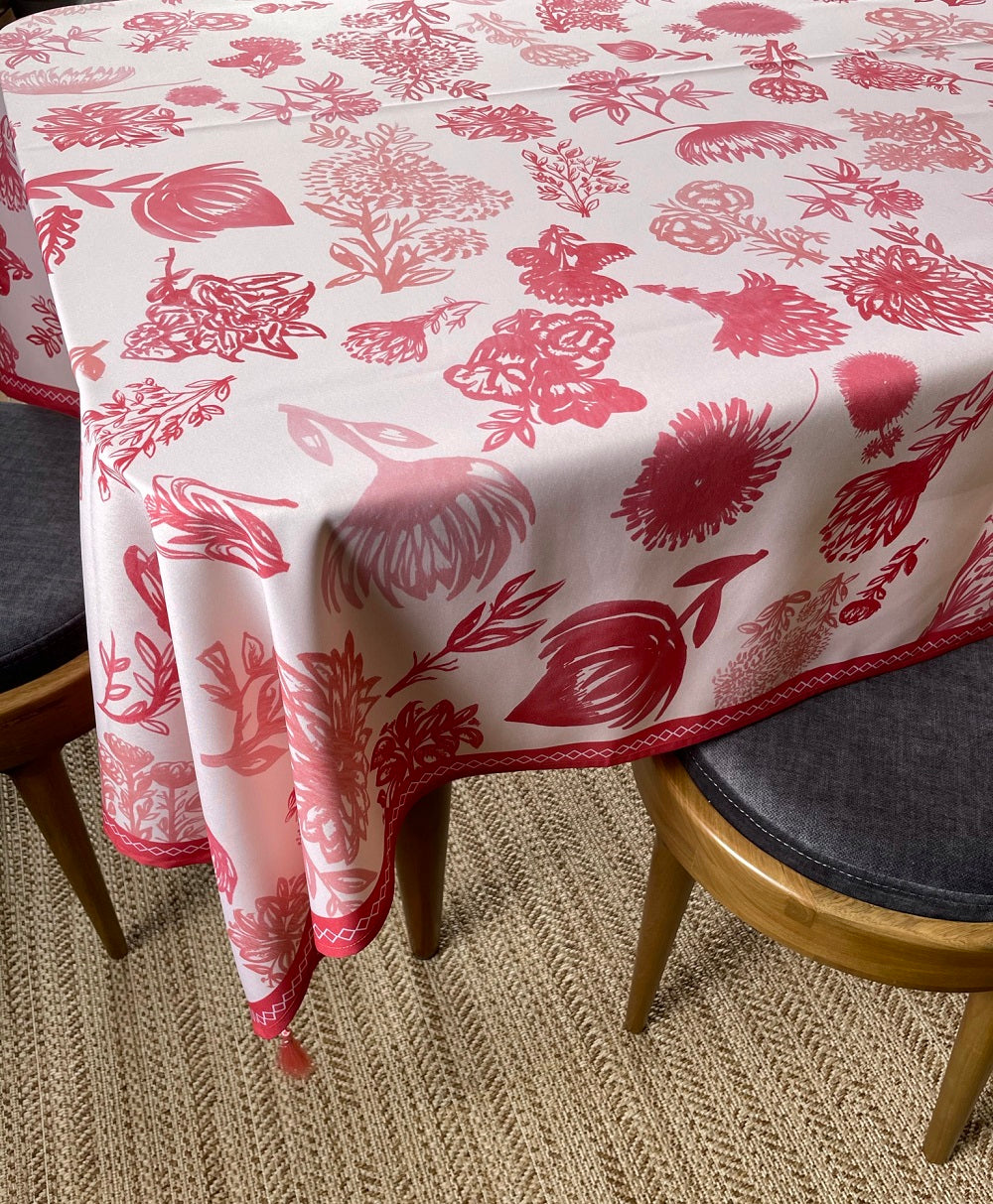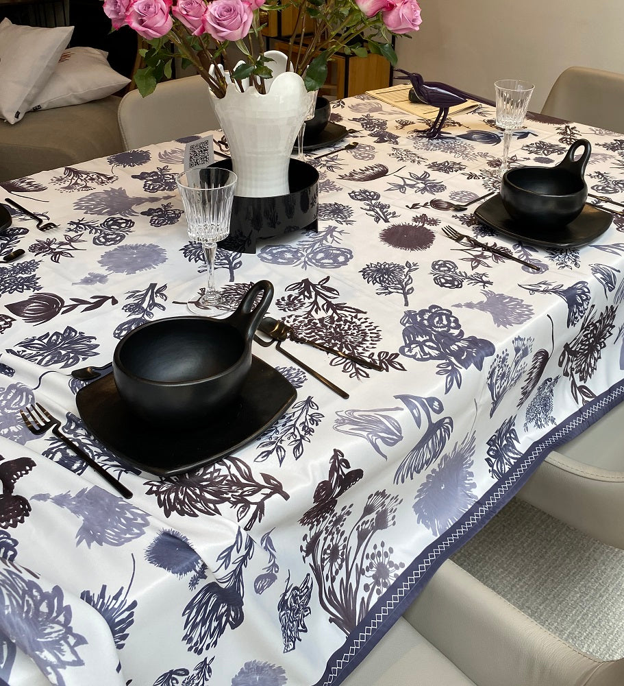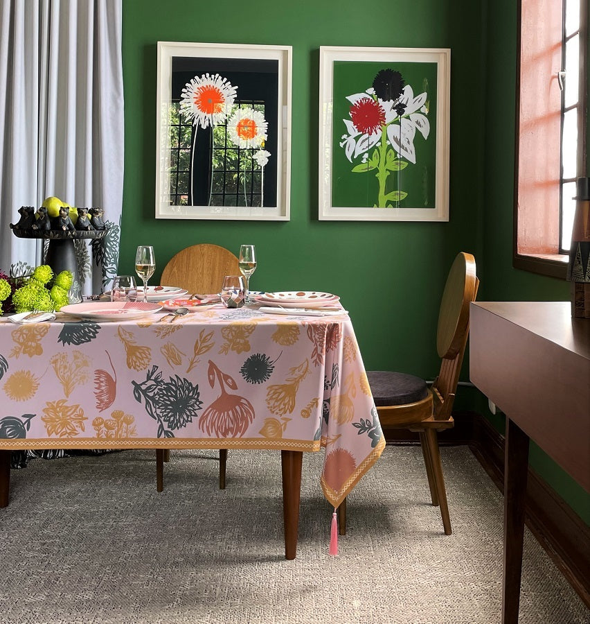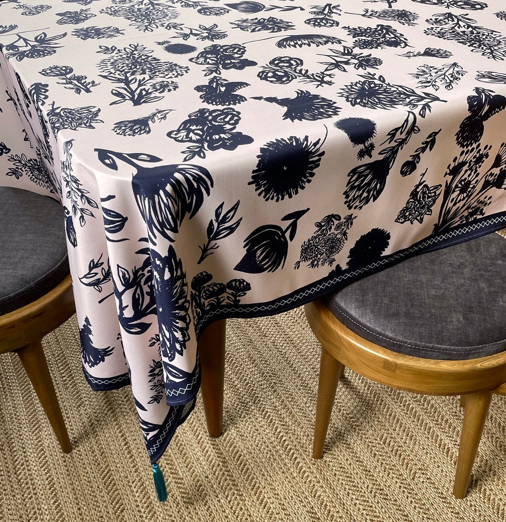 Mantel en lona tipo algodón, repele líquidos. estampado por sublimación.
