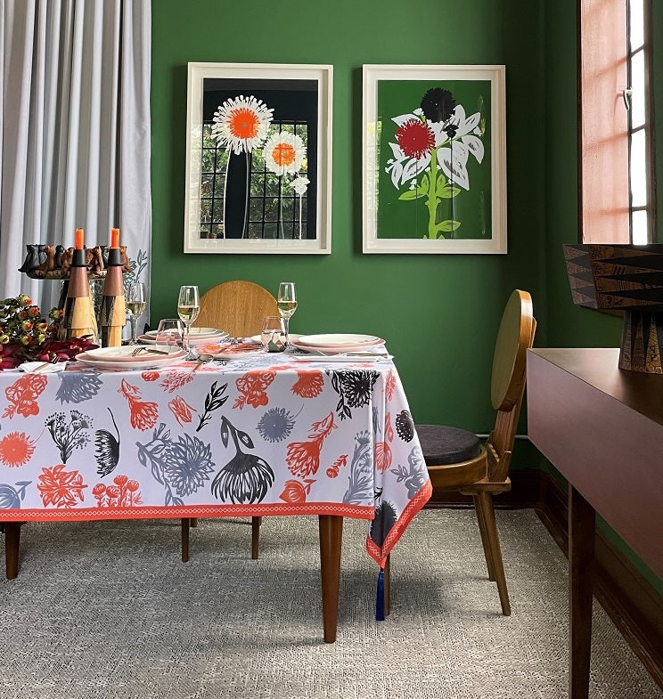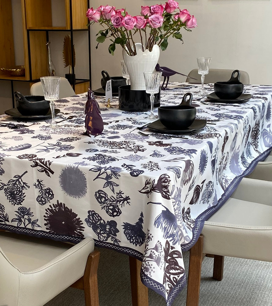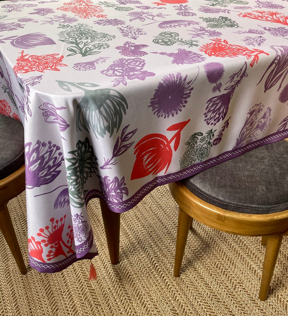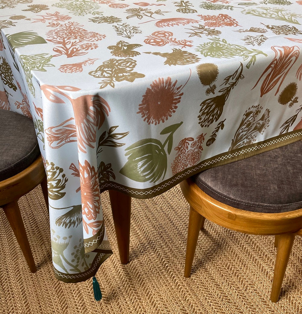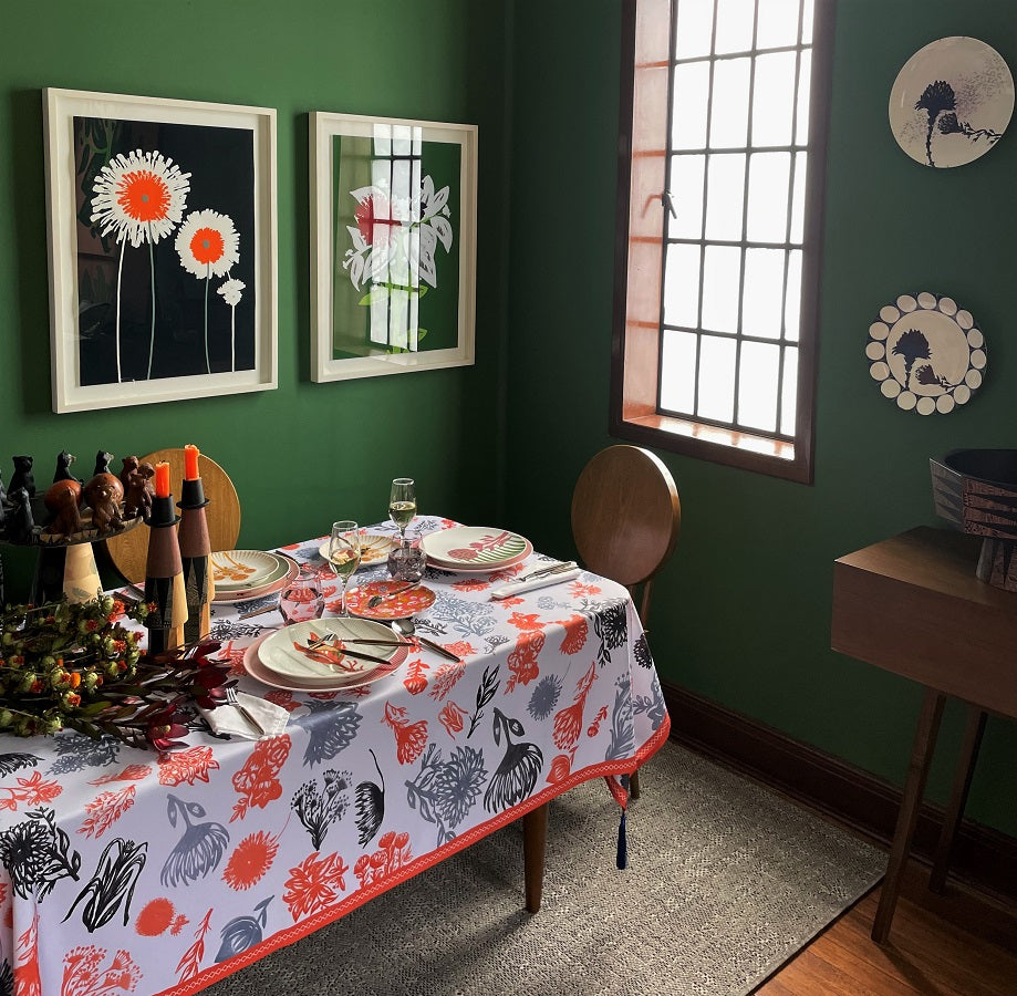 Mantel en lona tipo algodón, repele líquidos. estampado por sublimación.