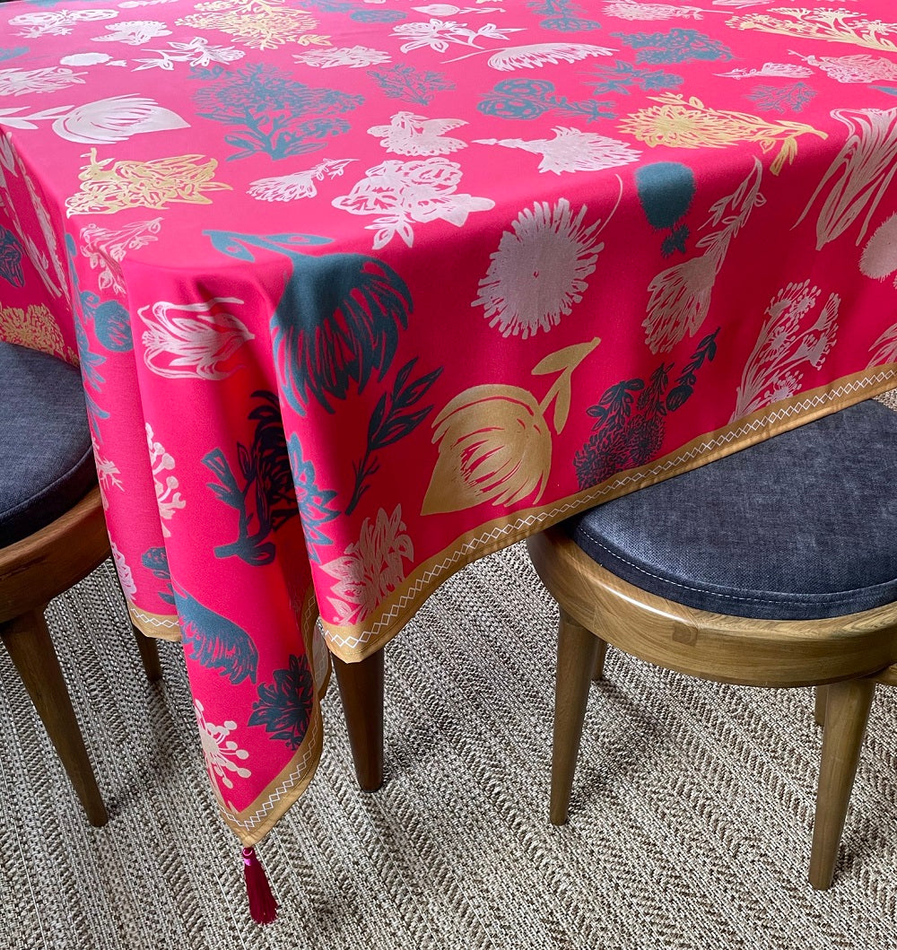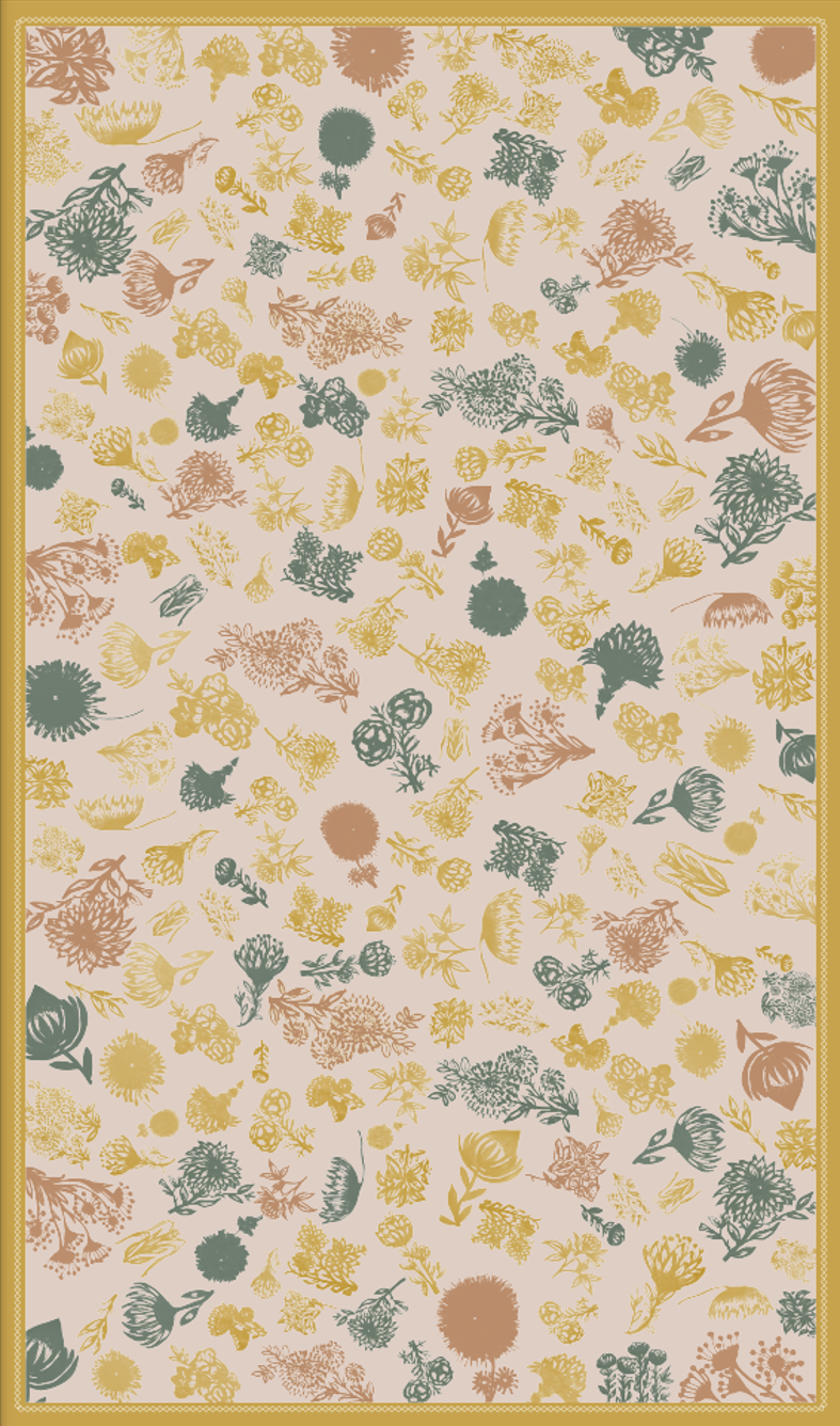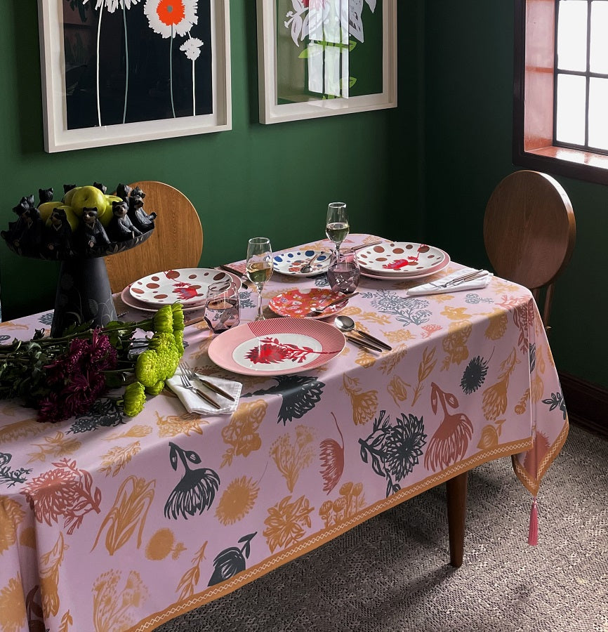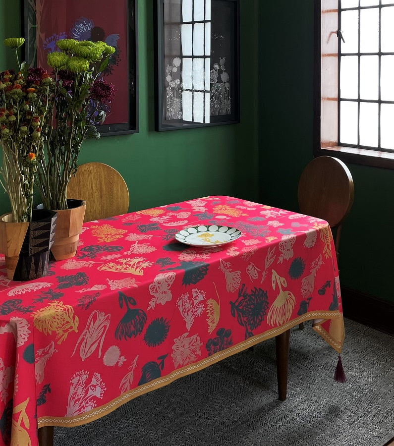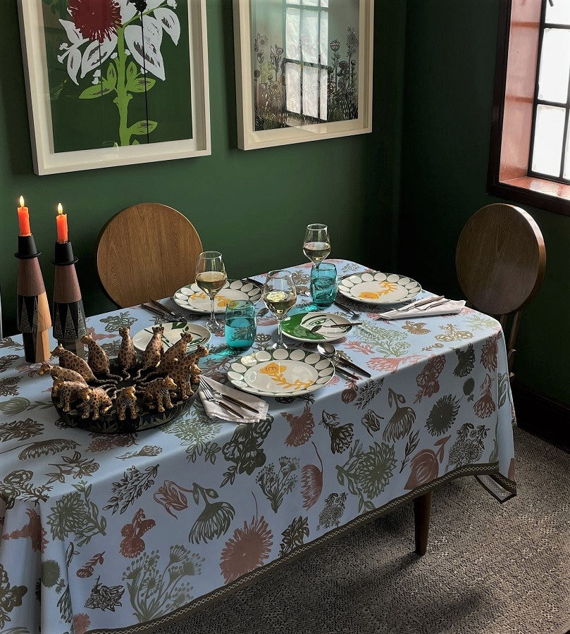 Mantel en lona tipo algodón, repele líquidos. estampado por sublimación.
