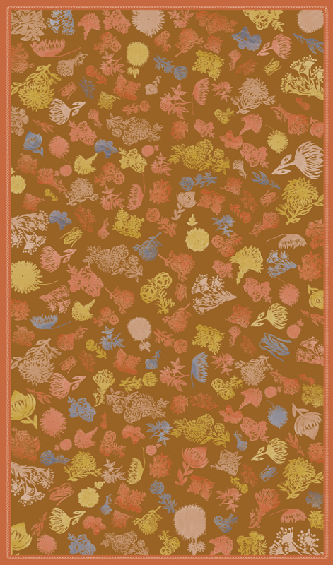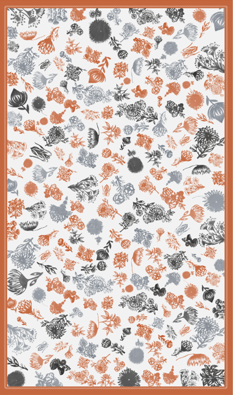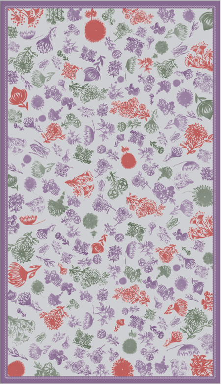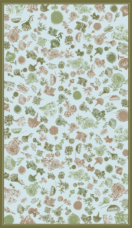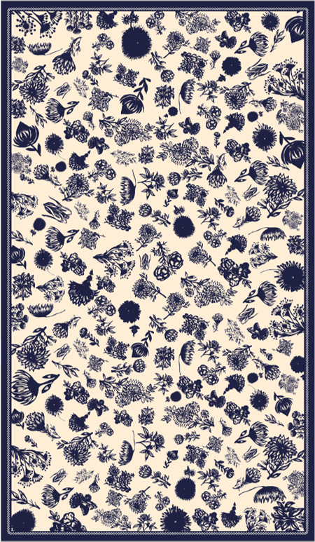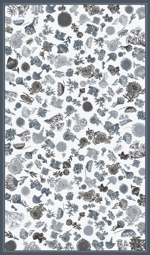 La creación de los patrones gráficos e ilustraciones de esta colección, parte de un dibujo a mano con tinta, trazo detallado de lo que queda en la memoria sobre la imagen de flores, ramas y arbustos presentes en ese Bosque Andino ubicado en 2.800 y 3.200 metros de altitud característico de los Cerros Orientales de Bogotá. El Bosque de Niebla se presenta como un ambiente húmedo, que se aprecia a la distancia como el característico manto de nubes que cubre la cumbre de las montañas andinas.
