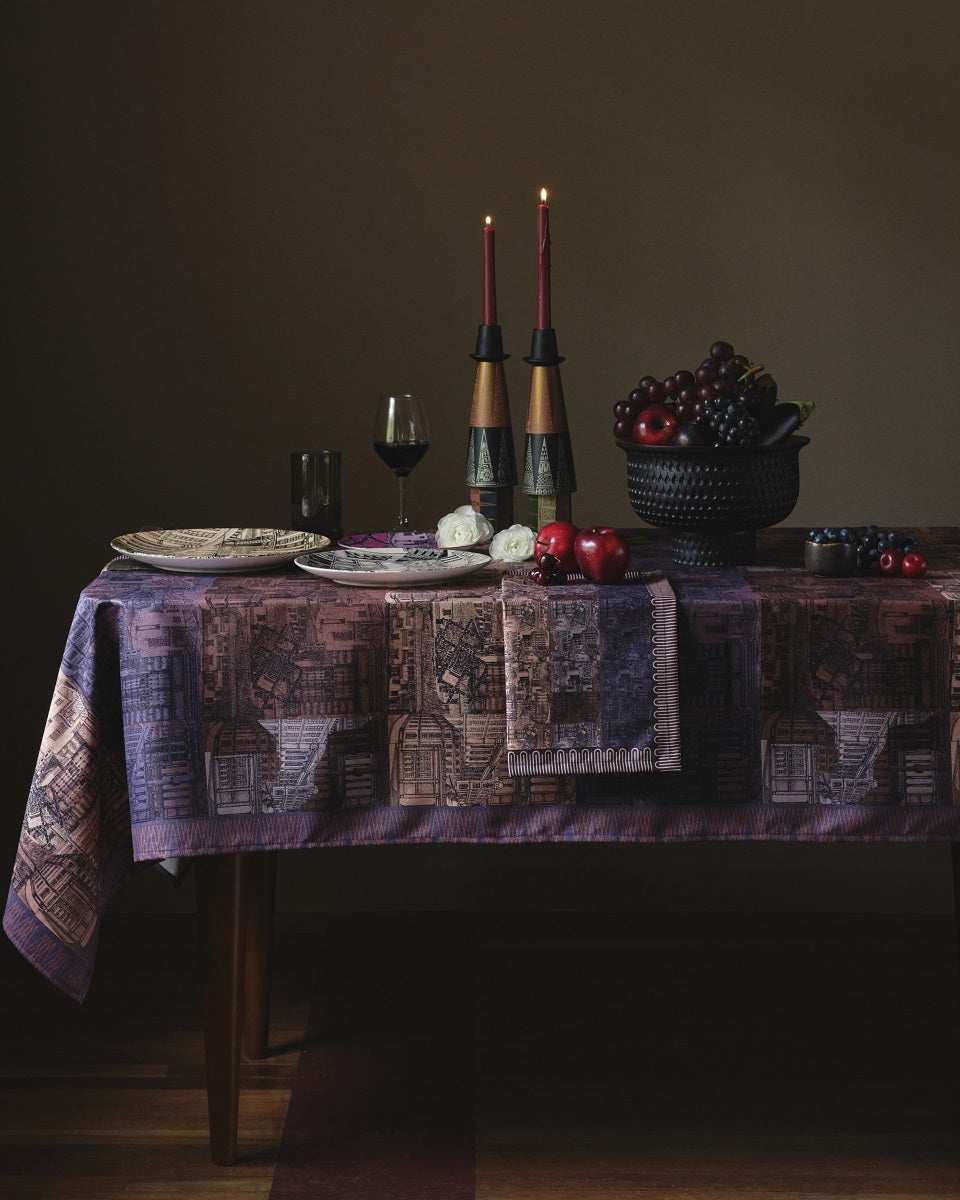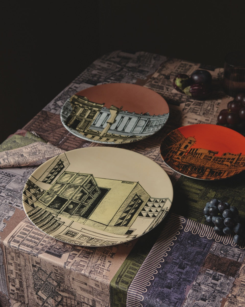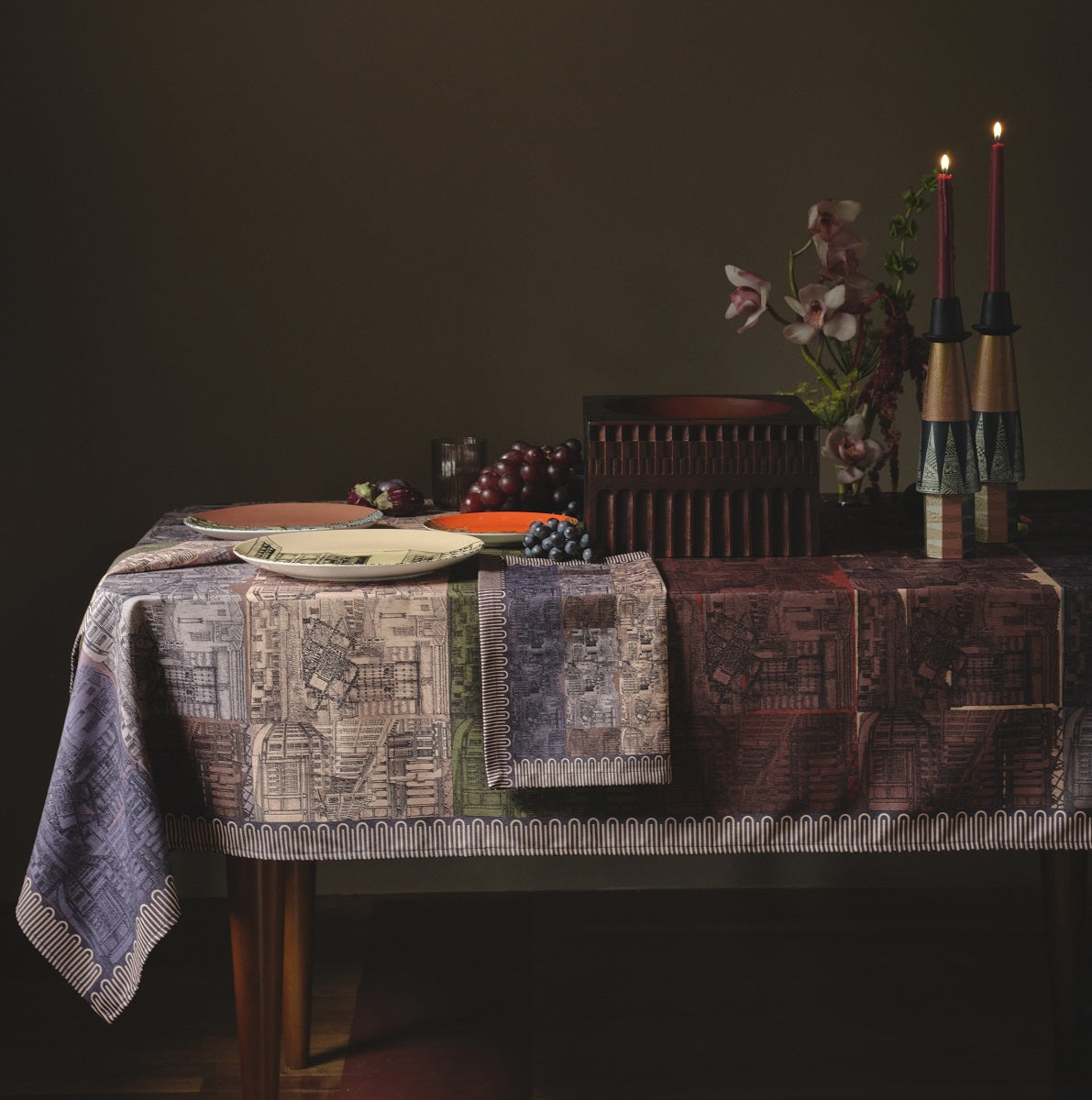 Con la serie de platos en porcelana, manteles y servilletas de esta colección, queremos hacer el relato de cómo la tipología arquitectónica / traducida en FORMA se define por el tiempo en nuestra memoria; iniciamos esta historia, de cómo la arquitectura ha generado códigos y símbolos a través del tiempo, creando UN ESPACIO definido por un lenguaje estético que caracteriza y reconocemos como propios e identificables de un tiempo y un lugar en nuestra memoria colectiva.