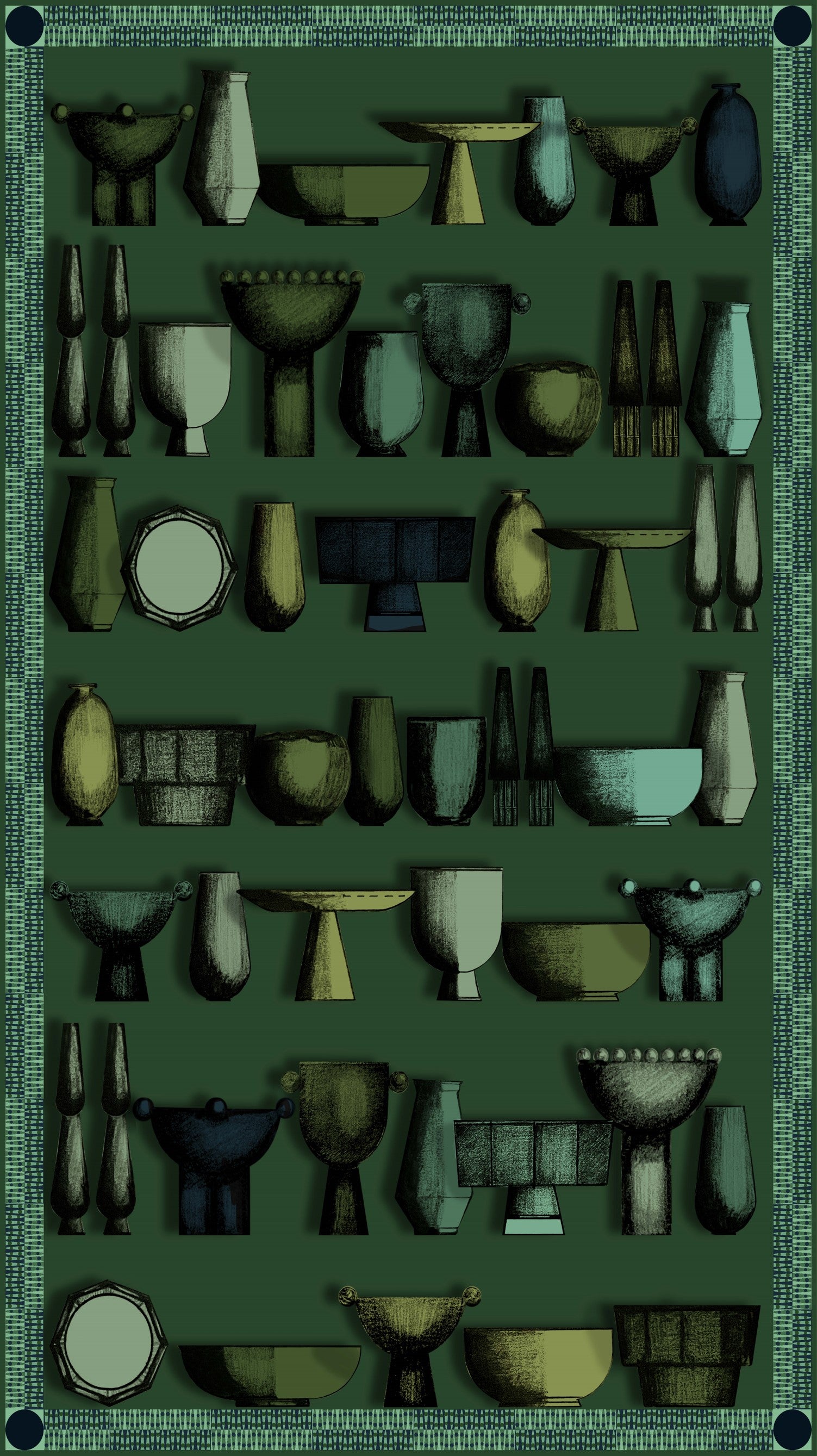 La línea cojines, de manteles y telas para colgar se crearon en tres patrones gráficos distintos, pero los tres guardan una cohesión de diseños, que narran la historia de cómo el origen de la forma y el color siempre vienen de la naturaleza; “LA FORMA Y EL COLOR LE PERTENECE A LA NATURALEZA “