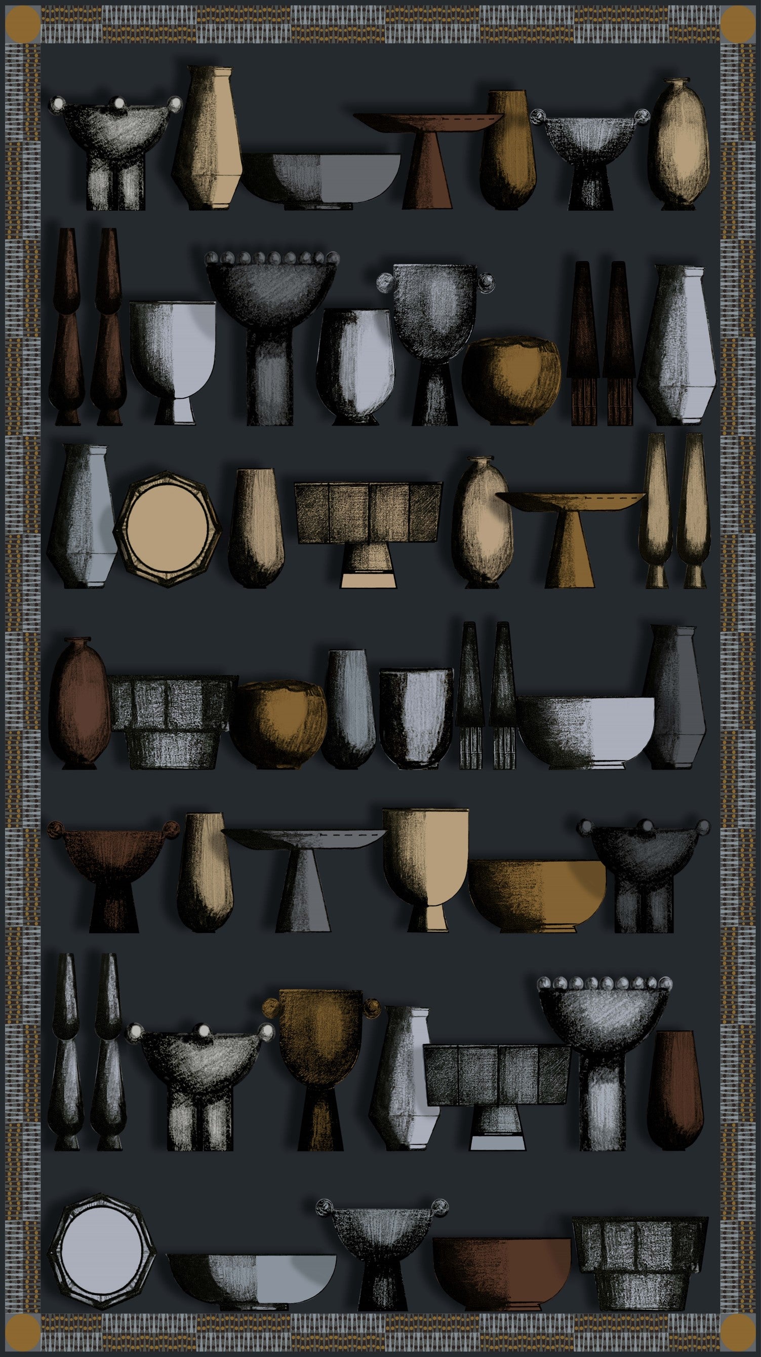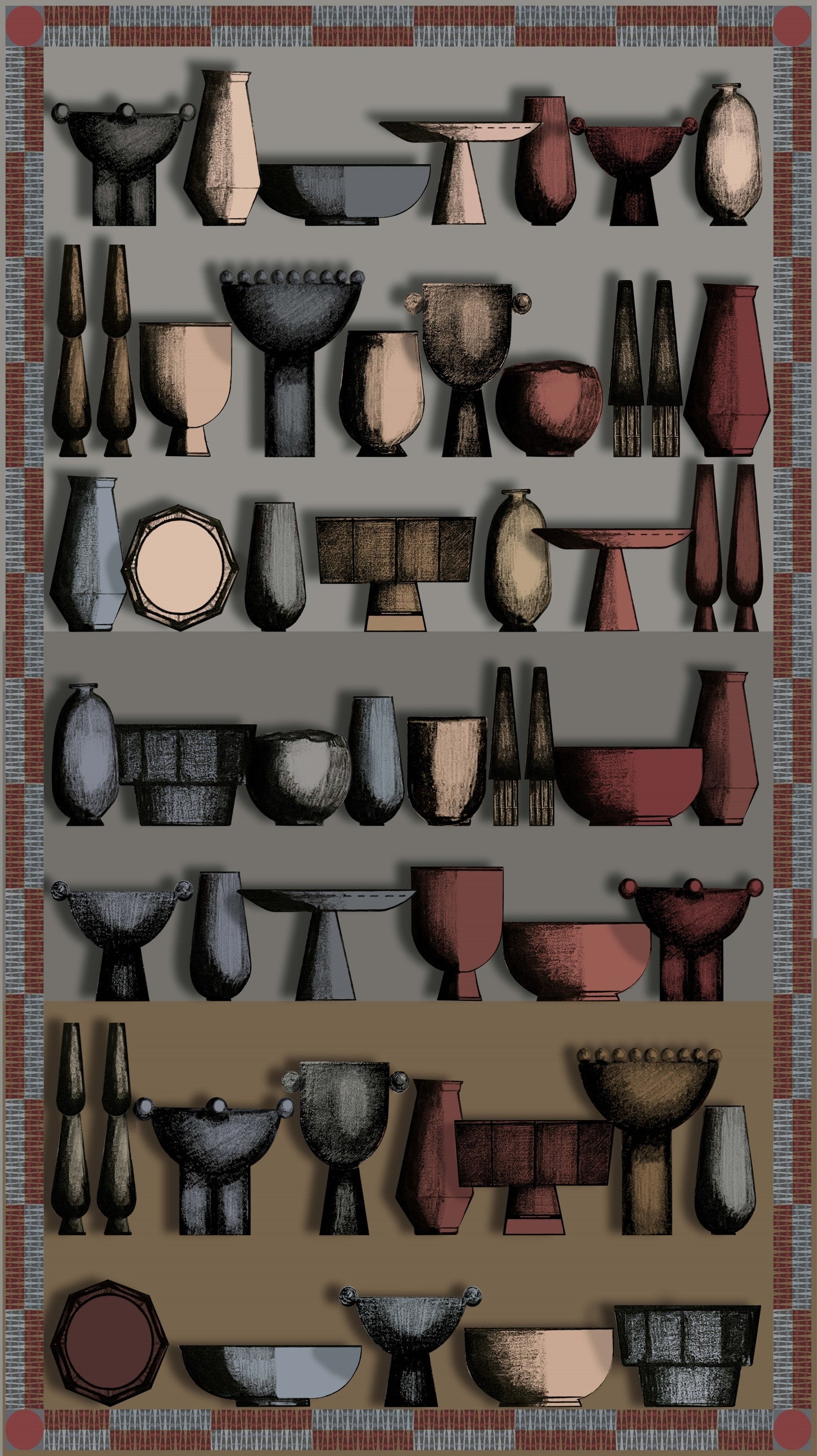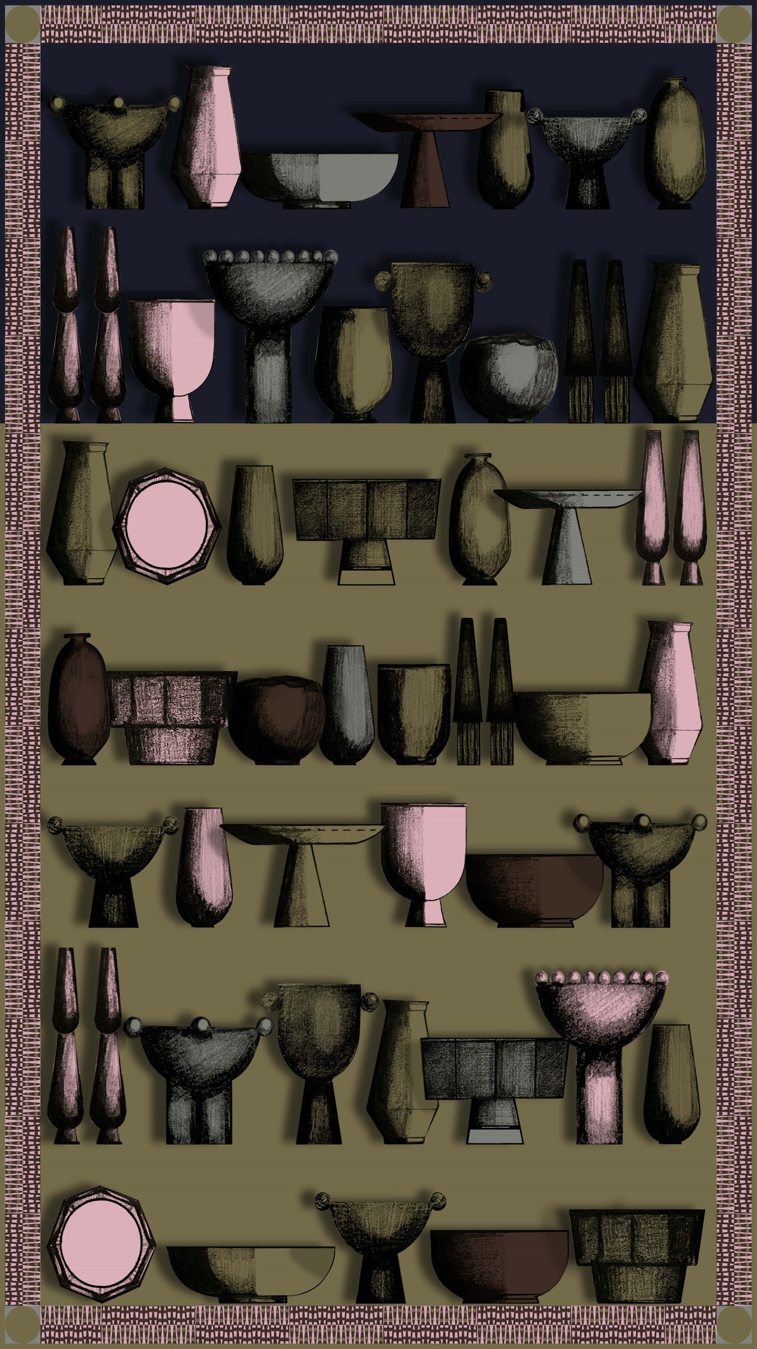Una paleta de colores inspirada en el arte europeo de principios del siglo XX, la representación de escenas de la vida cotidiana, permiten crear un surrealismo mesurado, donde el color y la textura de los textiles es el protagonista.