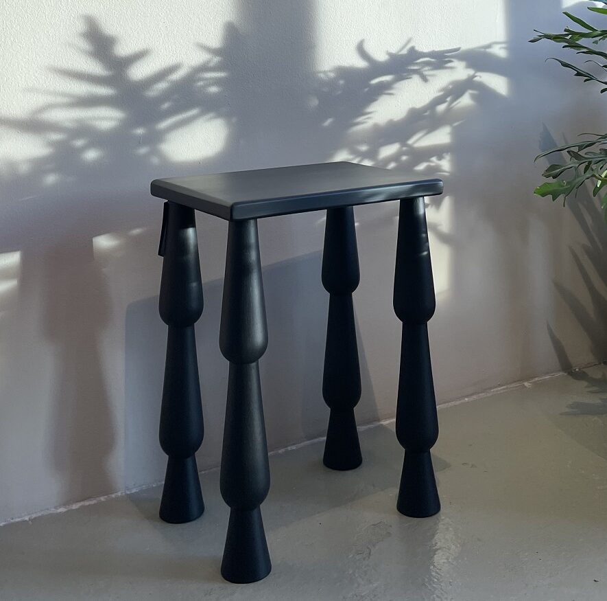 Funcional, dinámica y utilitaria al extremo, una mesa es la mejor solución para amoblar con calidez y buen gusto. En madera maciza esgrafiada y tintilla en color negro. Formas volumétricas y contemporáneas inspiradas en la semilla del anón, fruta exótica colombiana.
