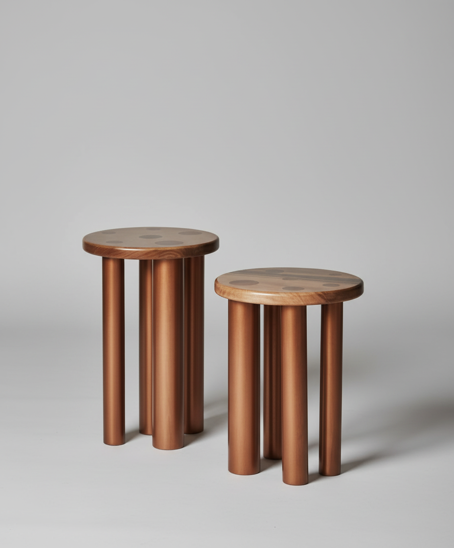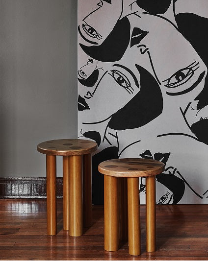 Elaborada en madera Flor morado y canelo. Acabado natural en tintilla semi mate. 6 patas cilíndricas que van de 2cm a 6cm. Disponible en 2 alturas diferentes. Pieza elaborada bajo pedido, tiempo de entrega 35 días.