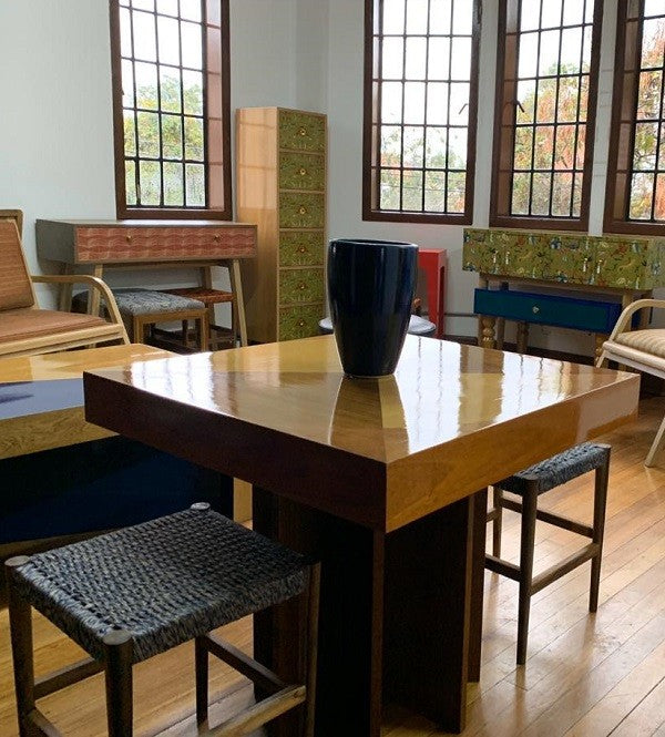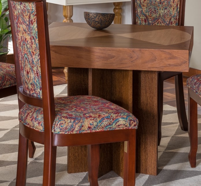 Mesa alta en madera maciza con trabajo decorativo en chapillas de diferentes tipos de madera, la mesa OCTA es sinónimo de elegancia y buen gusto. Su pata al centro en forma radial complementa el diseño decorativo de la superficie, la geometría y la hechura a mano con técnica artesanal hacen de esta pieza un icono del diseño de OCHOINFINITO. Disponible con acabado natural o semibrillante. Tiempo de entrega máximo: 30 días