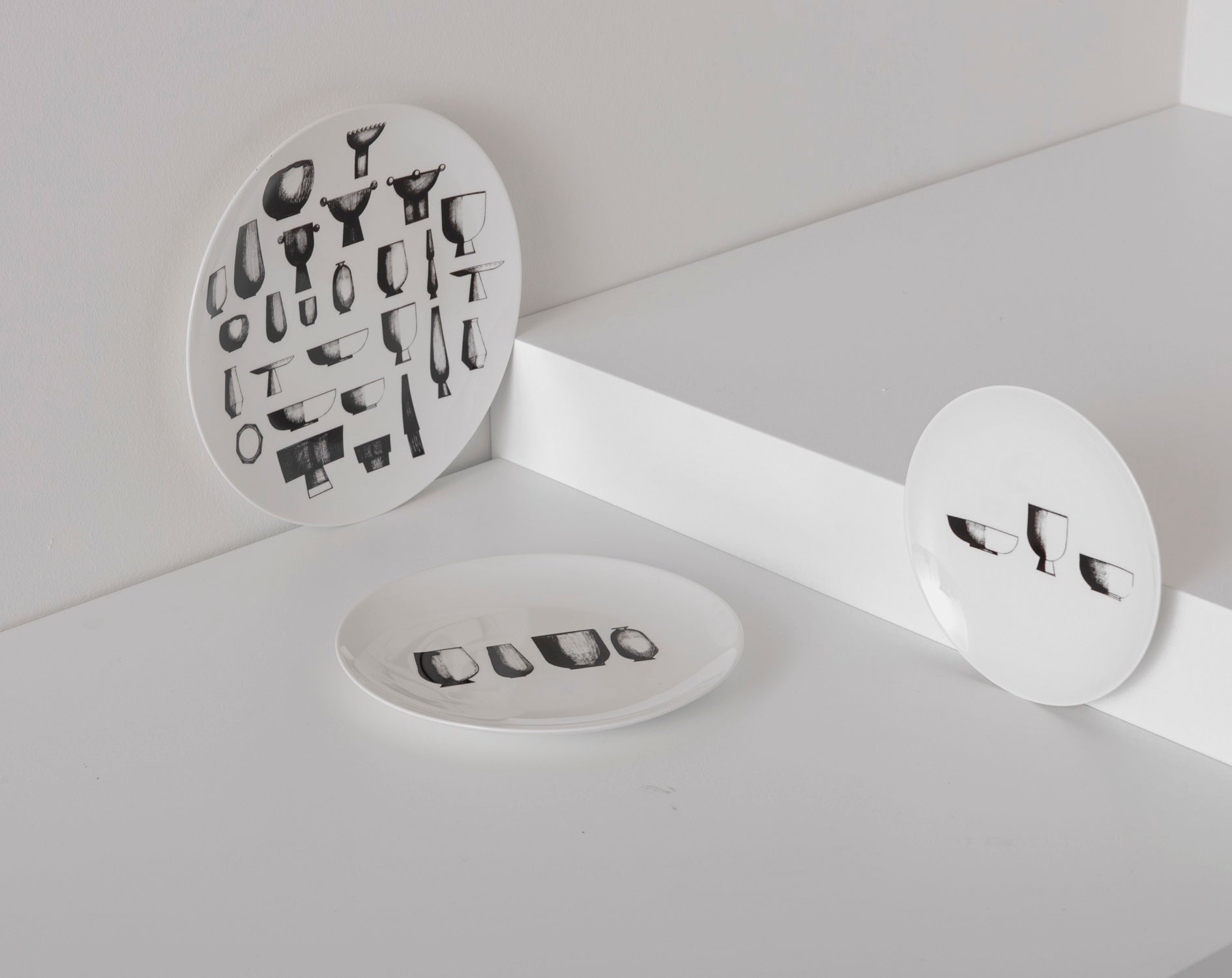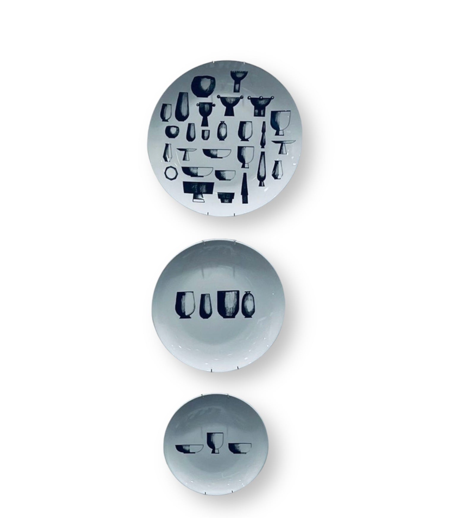 Los bocetos y dibujos derivados del estudio de la forma y análisis geométrico de un fruto como el Anón y sus semillas. Serie de Platos en porcelana en tres tamaños diferentes.