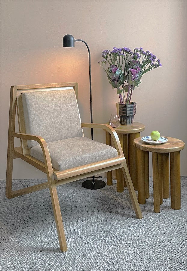 Con las dimensiones justas, de un diseño esbelto y contemporáneo, esta poltrona es símbolo de sencillez y buen gusto. La madera trabajada con destreza, retoma las antiguas técnicas de ensamblaje y construcción artesanal. Tapizada en tela europea de alta calidad a elección.Disponible con tapizado en tela a elección.Tiempo de entrega máximo: 30 días