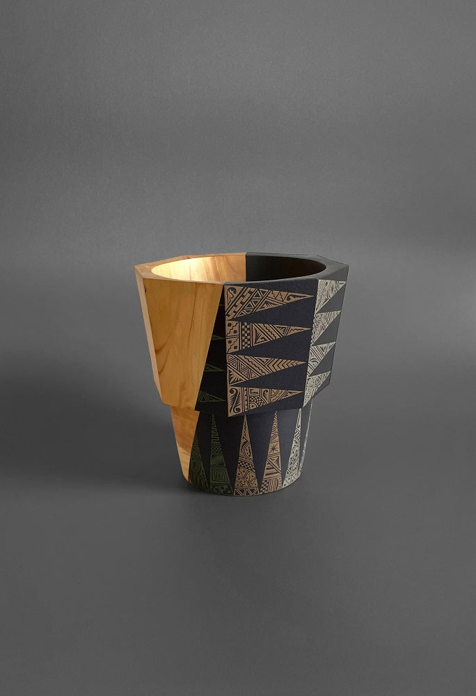 Vasija elaborada en madera torneada y decorado con la técnica artesanal del Barniz de Pasto - Mopa/Mopa.